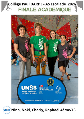 Finale académique d'escalade: le collège Paul Dardé dans le premier carré pour la 4ème année consécutive.