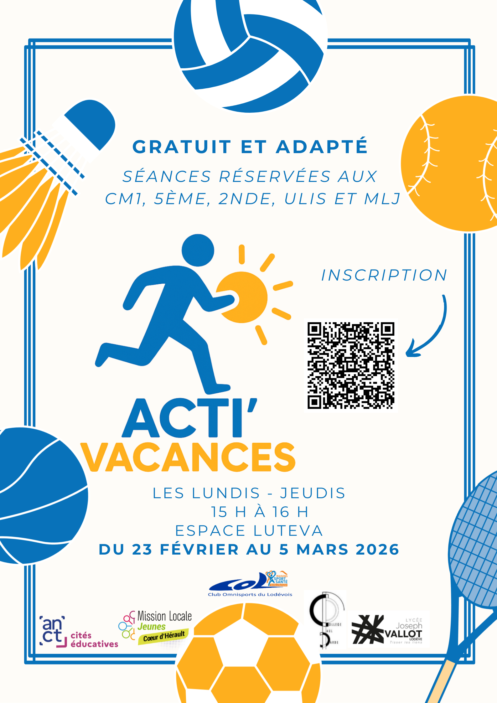 NOTRE PARTENAIRE DE LA MAISON SPORT SANTE LODEVOIS ET LARZAC PROPOSE DES ACTIVITES SPORTIVES PENDANT LES VACANCES D'HIVER !