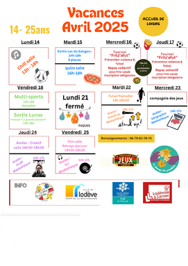 LE PROGRAMME DES VACANCES D'AUTOMNE DU SERVICE JEUNESSE 11-14 ans et 14-25 ans est ici !