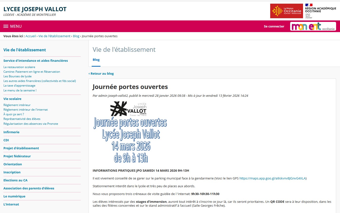 SAMEDI 14 MARS JOURNEES PORTES OUVERTES DU LYCEE JOSEPH VALLOT !