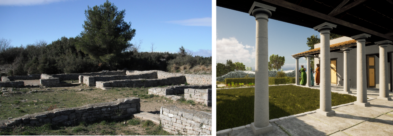 Le premier atelier était un véritable voyage dans l’Antiquité ! Les élèves ont visité le site munis de tablettes numériques et de l’application Ambrussum 3D. Au fil du parcours, cette application leur a permis de remonter le temps au cœur du 1er siècle après J-C, à l’aide des reconstitutions 3D des paysages de la ville antique, offrant une visite immersive de l’histoire du lieu. Des personnages animés, des animaux et les paysages naturels donnaient vie aux restitutions. Les élèves ont pu apercevoir le forgeron du relais routier battre le fer, un édile politique faisant un discours sur le forum ou encore des commerçants en charriot traversant le pont romain.