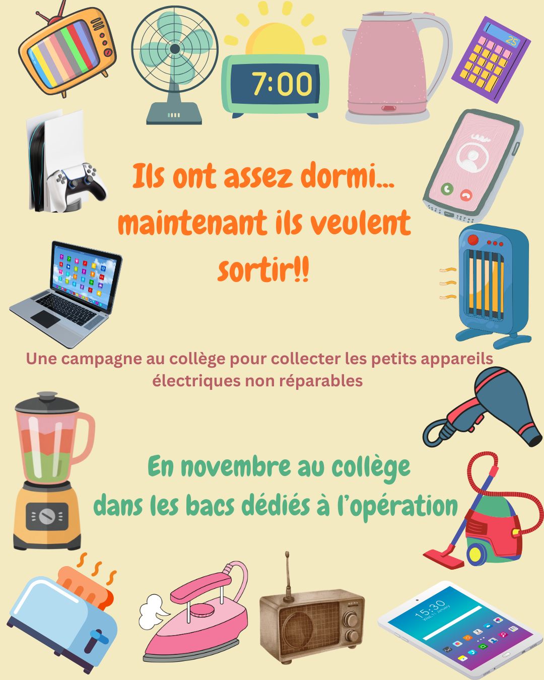 Un opération de collecte en vue du recyclage conduite par Mme ROCHETTE et ses élèves.